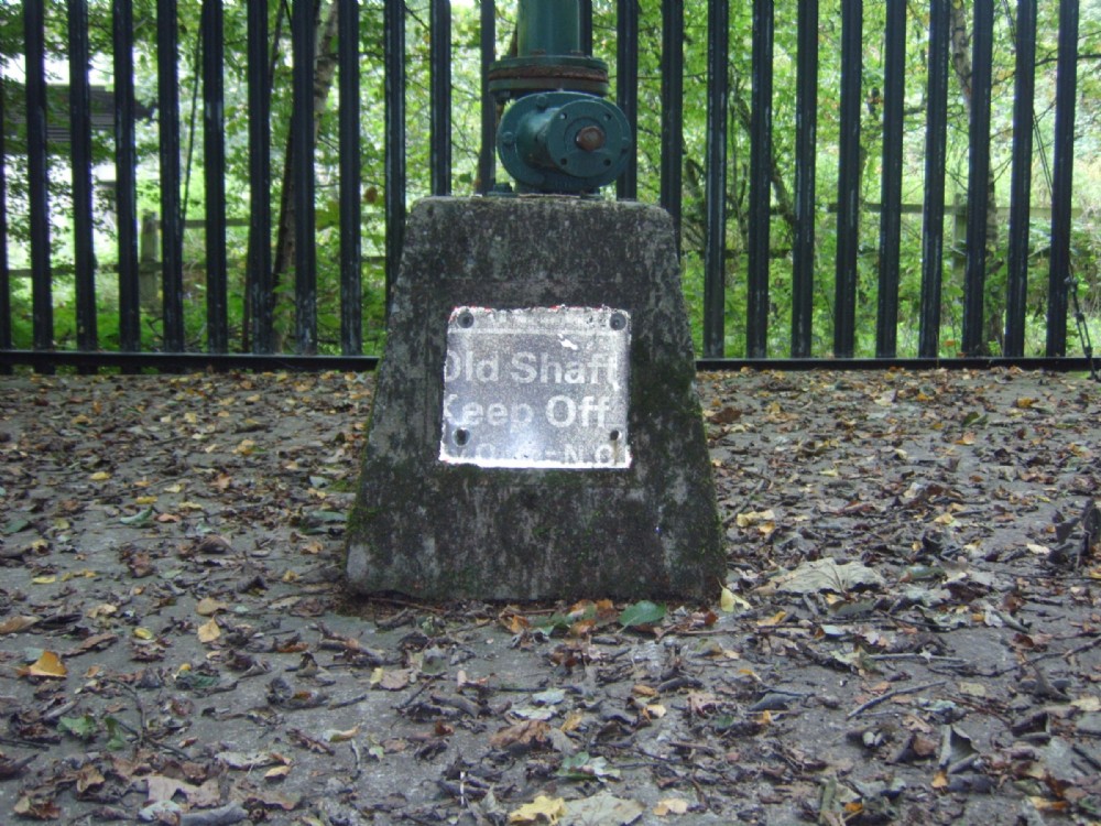 View of oblisk name plate which shows the words. "OLD SHAFT" and has NCB in the bottom right hand corner