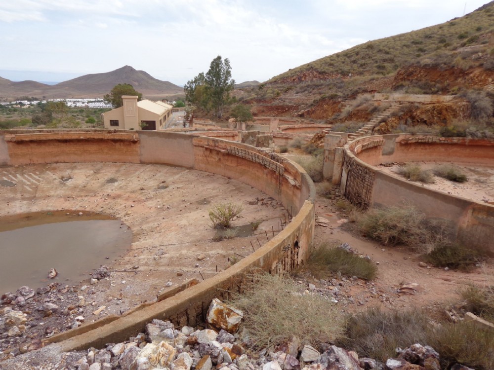View from above of the washing tanks with the museum in the background (unfortunately closed on the day of our visit)