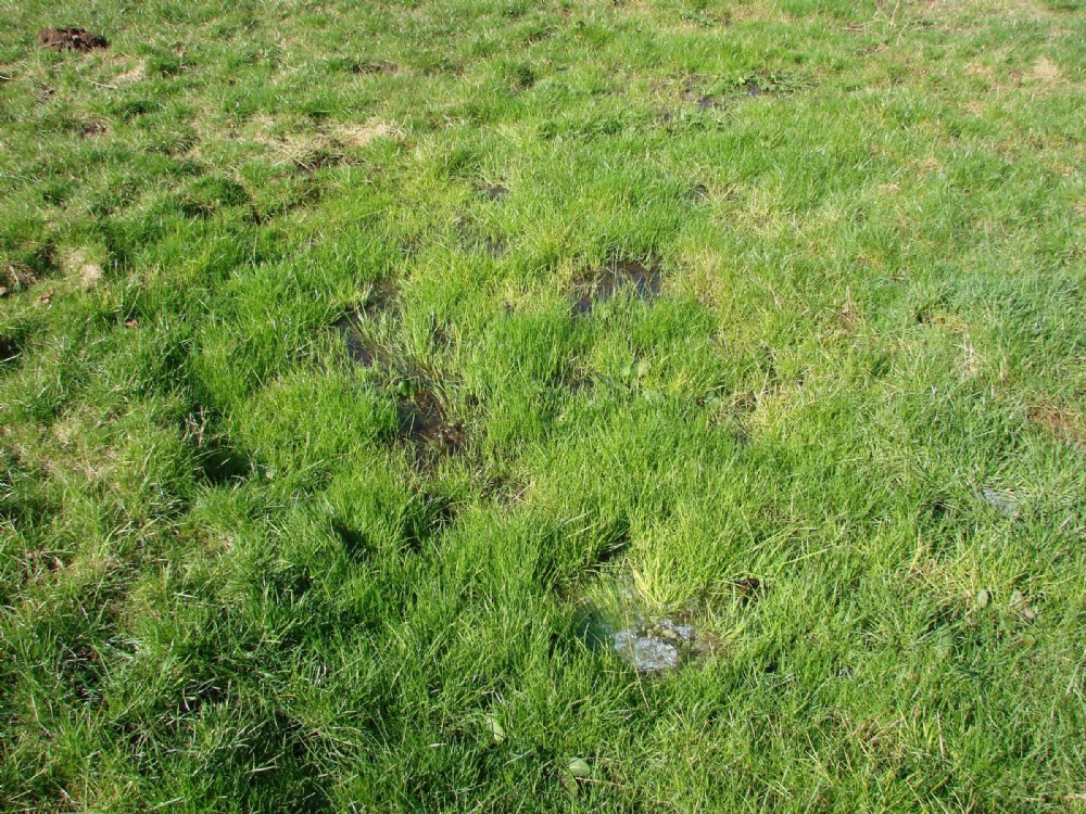 Water from the sough bubbling up in the middle of the field and sinking a few feet further on. Presumably the bolt is either blocked by the top falling in or has completely silted up at this point.