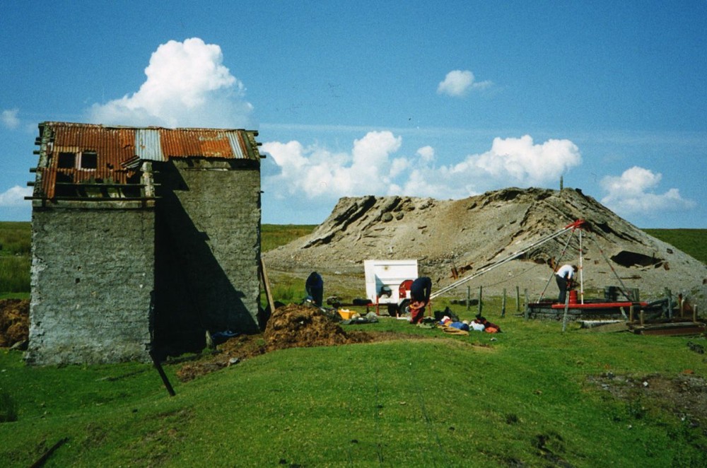 Setting up the winch. Since this was taken the building has now been converted to a shooting hut and the shaft has a new timber capping.