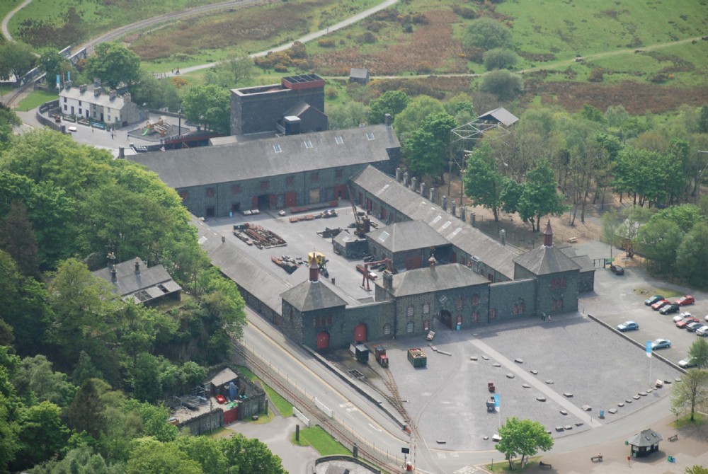 The Welsh Slate Museum, housed in the old Gilfach Du workshops, as viewed from high on the hillside above.