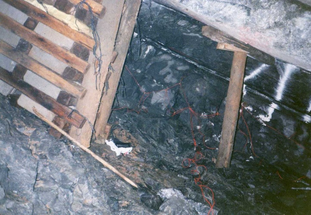 Wooden chocks in a stope at 7 shaft.