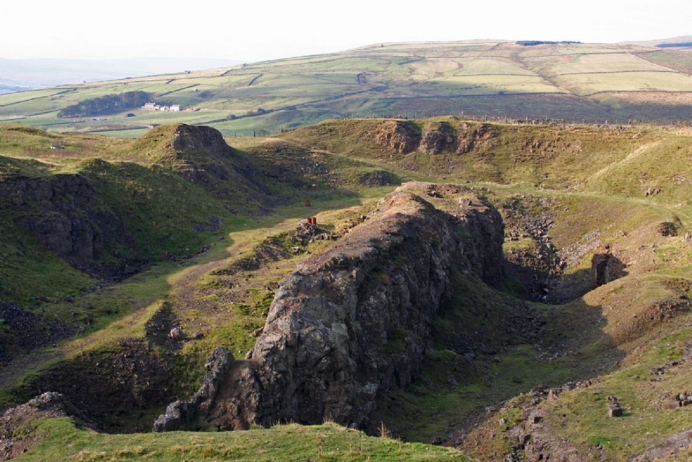 Looking west across the quarry towards Slitt Mine which is in the valley below.