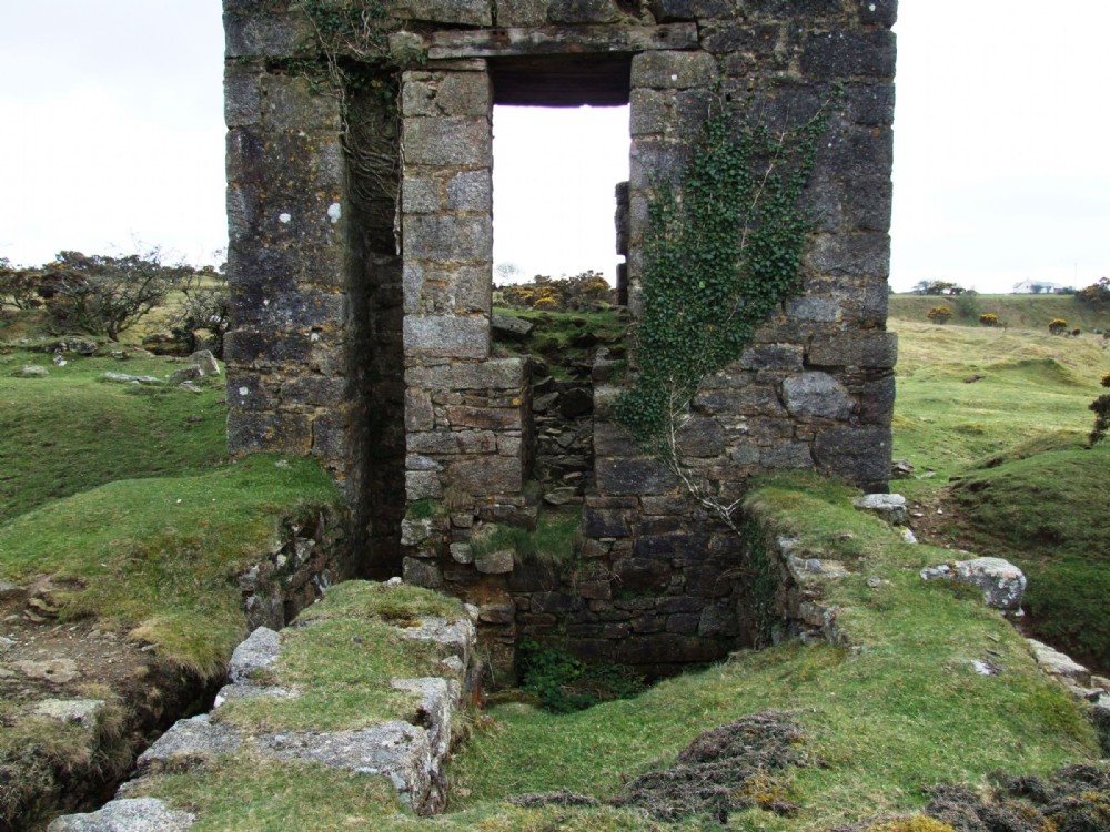 36in Stamps Engine House, flywheel slot on the left, loadings in the forground. The Flywheel was 28-29ft diameter, This Engine pumped from Bellinghams Shaft by flat rods untill the 70in was installed in 1886. After this 12 extra head of stamps was added 07-04-12