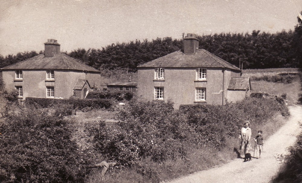 Miners cottages at Wheal Maria (built 1853). Left to right no.s 17 to 20, taken circa 1964 pictured Jean Wadlan and StephenWadlan (me!).