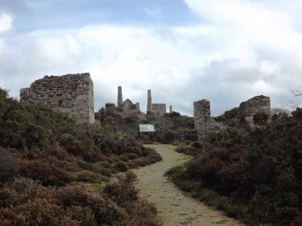 The two furnaces front, the stamps engine house behind and left, the pumping engine house behind and centre and the chimney of the winding engine house behind. Nov 2011
