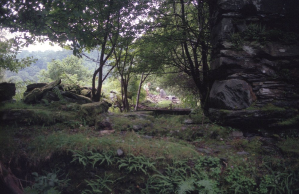 Looking roughly south from the wheelpit towards the sand saw bases. Note the holding down bolt for a bearing in the middle distance.