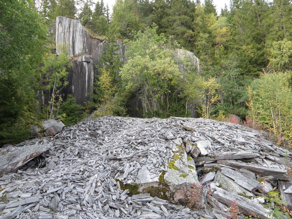 A view of the upper part of the whetstone quarry showing the significant amount of waste generated.