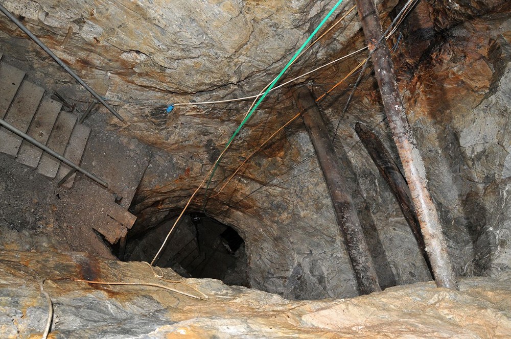 View looking down the shaft from the present end of the visitor route in the mine. Note the new steps below - not quite finished, to allow visitors to go deeper.