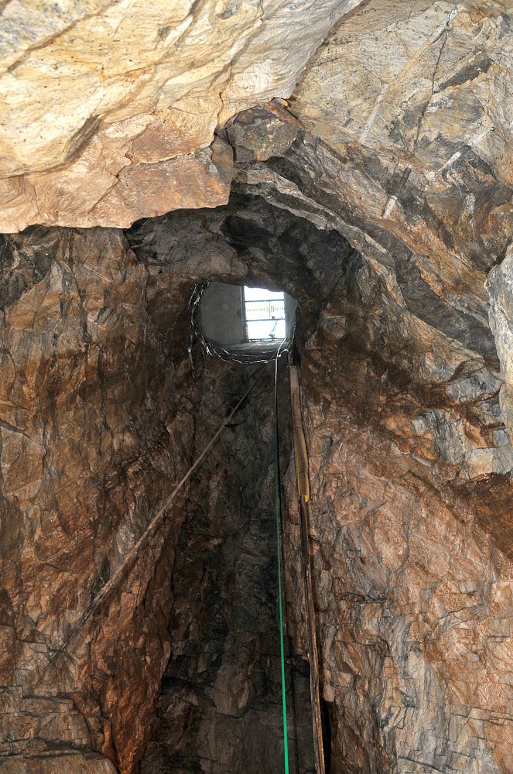 View up the shaft from the present end of the visitor route in the mine. The shaft is approx. 76 feet deep.