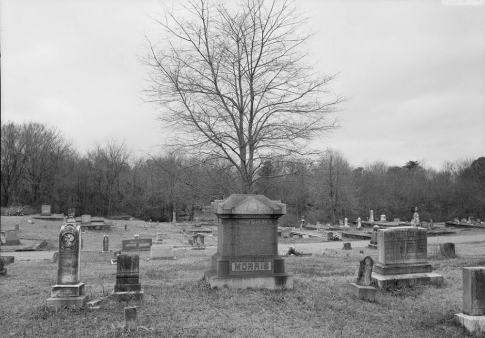 OVERVIEW WITH WILLIAM MORRIS GRAVE MONUMENT, THE INSCRIPTION ON WHICH READS: 'GOD'S FINGER TOUCHED HIM AND HE SLEPT.'