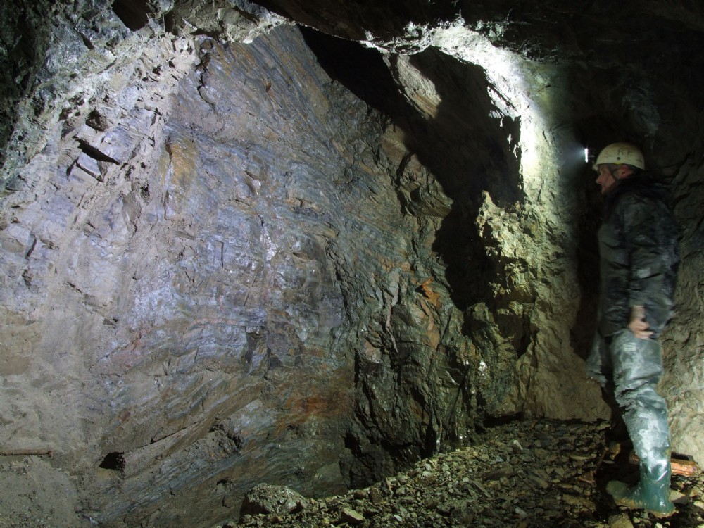 Williams Shaft, surprisingly is open at this level, upwards to an indeterminate height, and down for about 12 feet. It passes through a chamber which possibly served as a landing for kibbles, no sign of any pitwork etc in the shaft but the right hand wall has a peg (centre right)which may have once provided attachment for arising main.