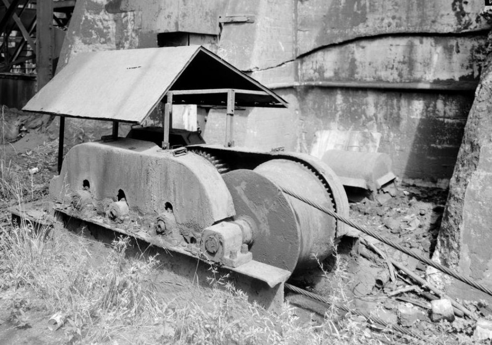 Winch located at base of No. 1 Furnace for pulling ladle cars from furnace to pig machine.
