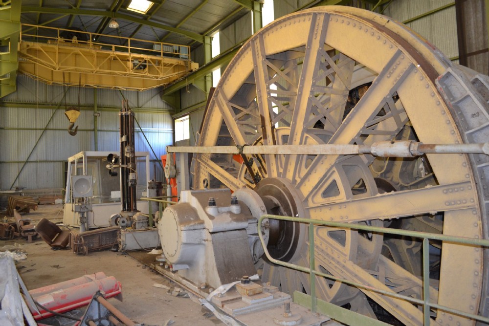 Inside the winder house. It appears to be a ground mounted friction winder.