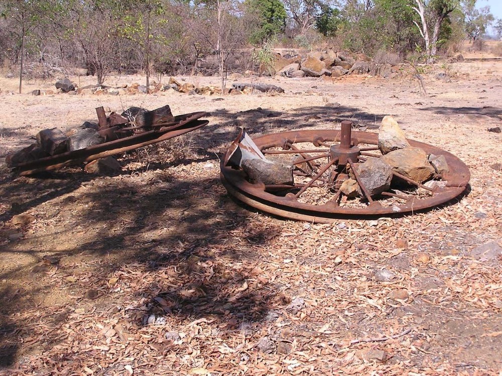 Two winder wheels from the headframe, possibly dating back to the 1920s.