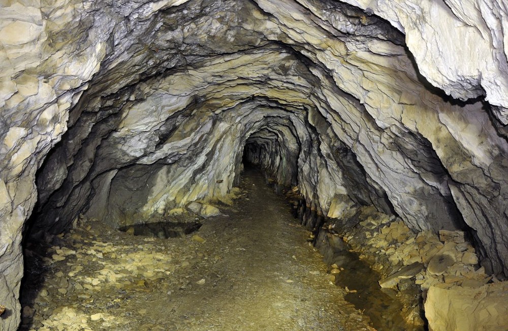18 ft. deep winze at the side of the main entrance adit. Winze sunk on the vein in June 1924. [Picture: October 2012]