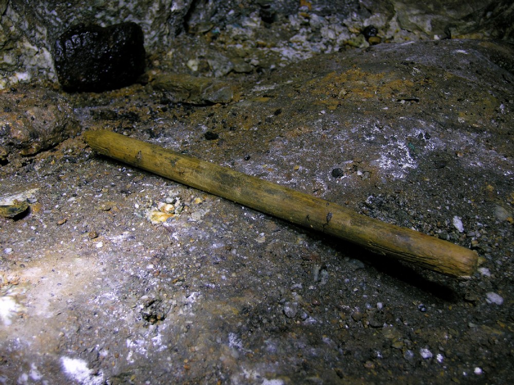 The size and shape of this wooden rod suggest it was used for tamping down powder in shot holes.