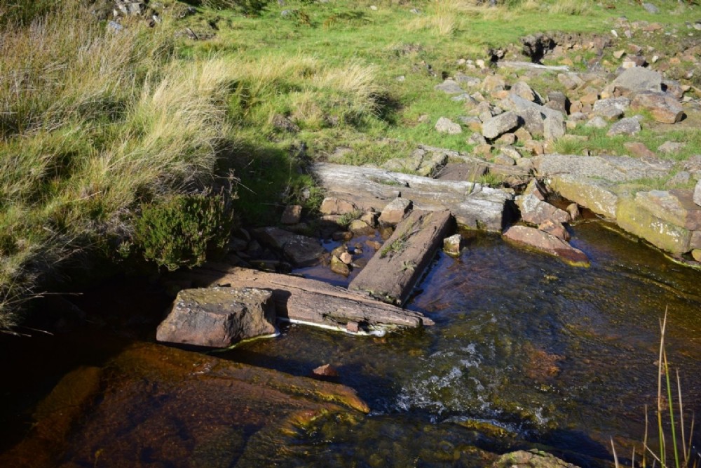 Part of the control structure (sluice gate?) at the top of the inlet to the possible water wheel pit