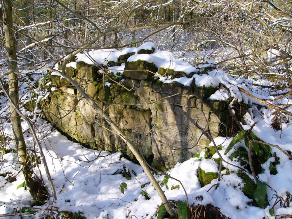 The range of workshops has been well knocked about and this is the tallest remnant, a dividing wall.