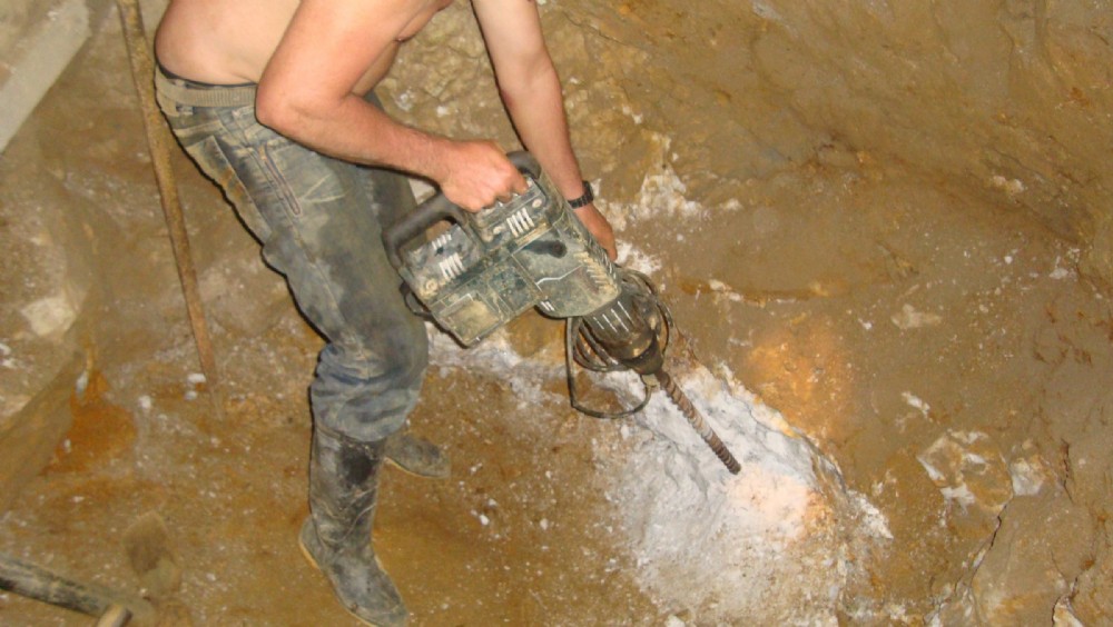 Artisanal mining at its best - adapting an industrial electric drill to drlling small shot holes in a high grade gold-quartz vein. They then hand roll small sausages of gelignite from indugel stick powder and fire one hole at a time with electric deonators. Might break a hundred kilos if they are lucky. This would be two sacks to be carried out to surface up the old shaft 55m near vertical. Why ? Well the handpicked ore runs around 100g/t gold.