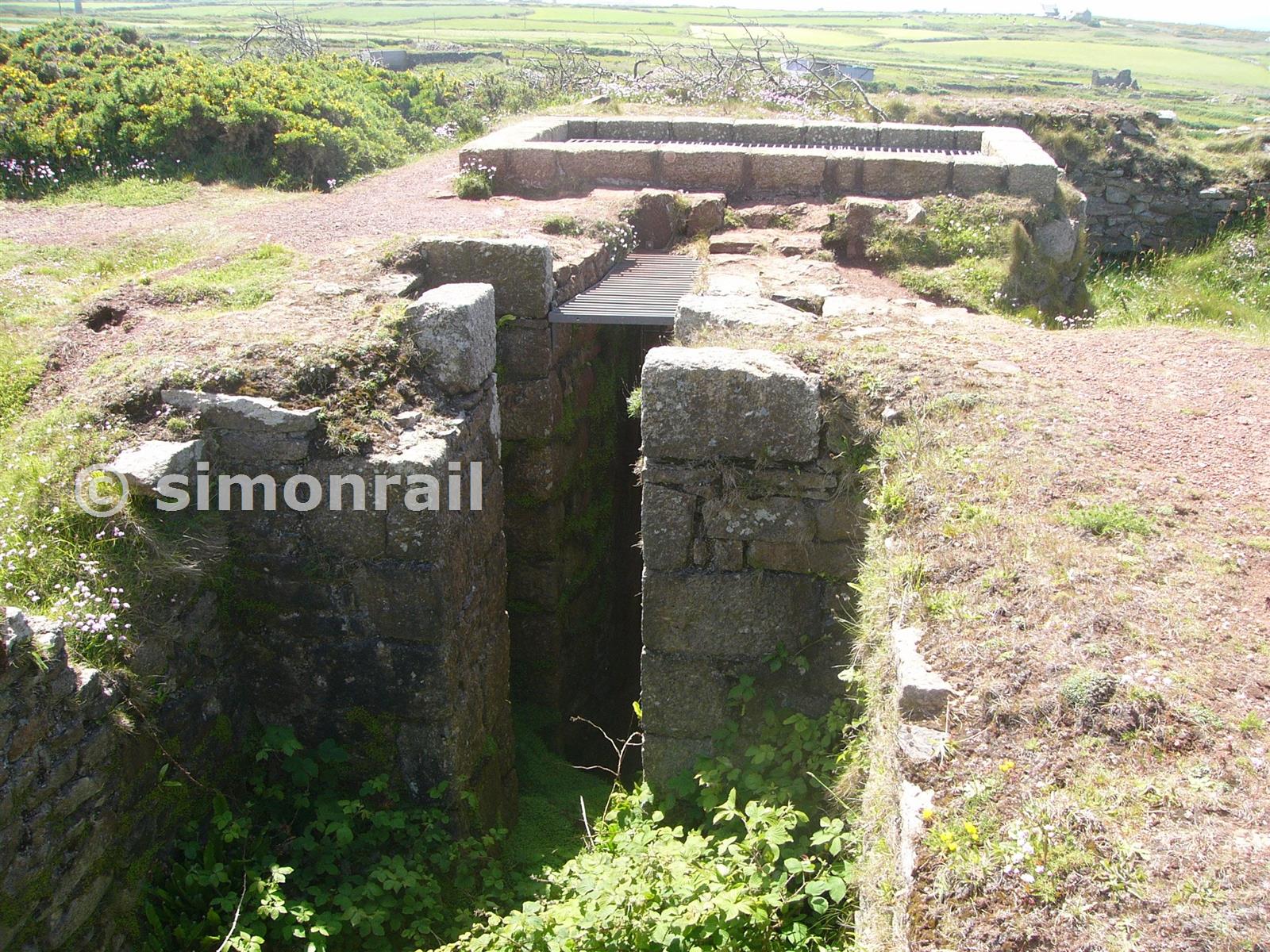 Foundations which supported the end of the flat rod and the quadrant which enabled pumping from the rectangular shaft in the background.