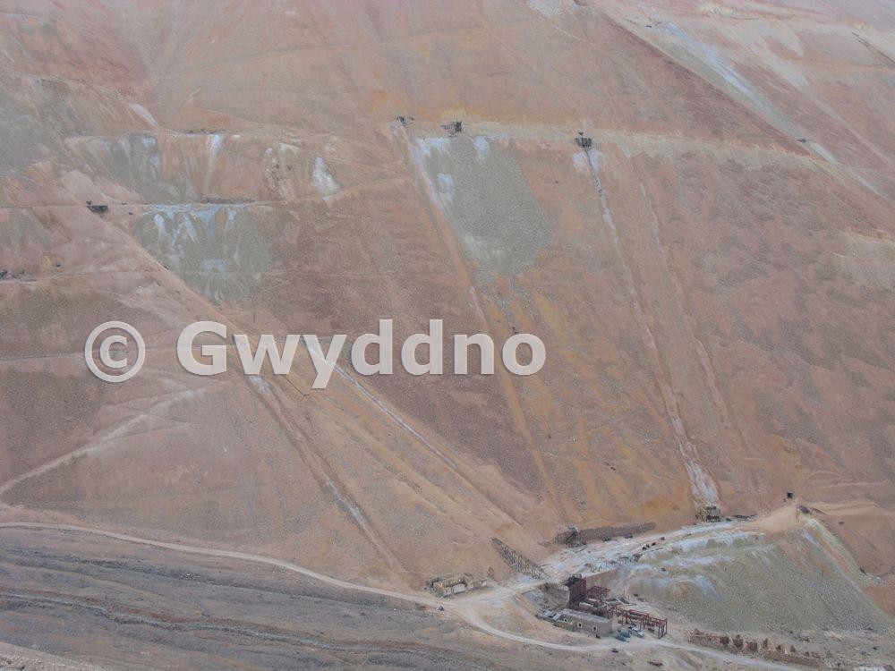 Oct 09 The lines down the hillside are the remains of inclines from the adits down to the cableway's head.