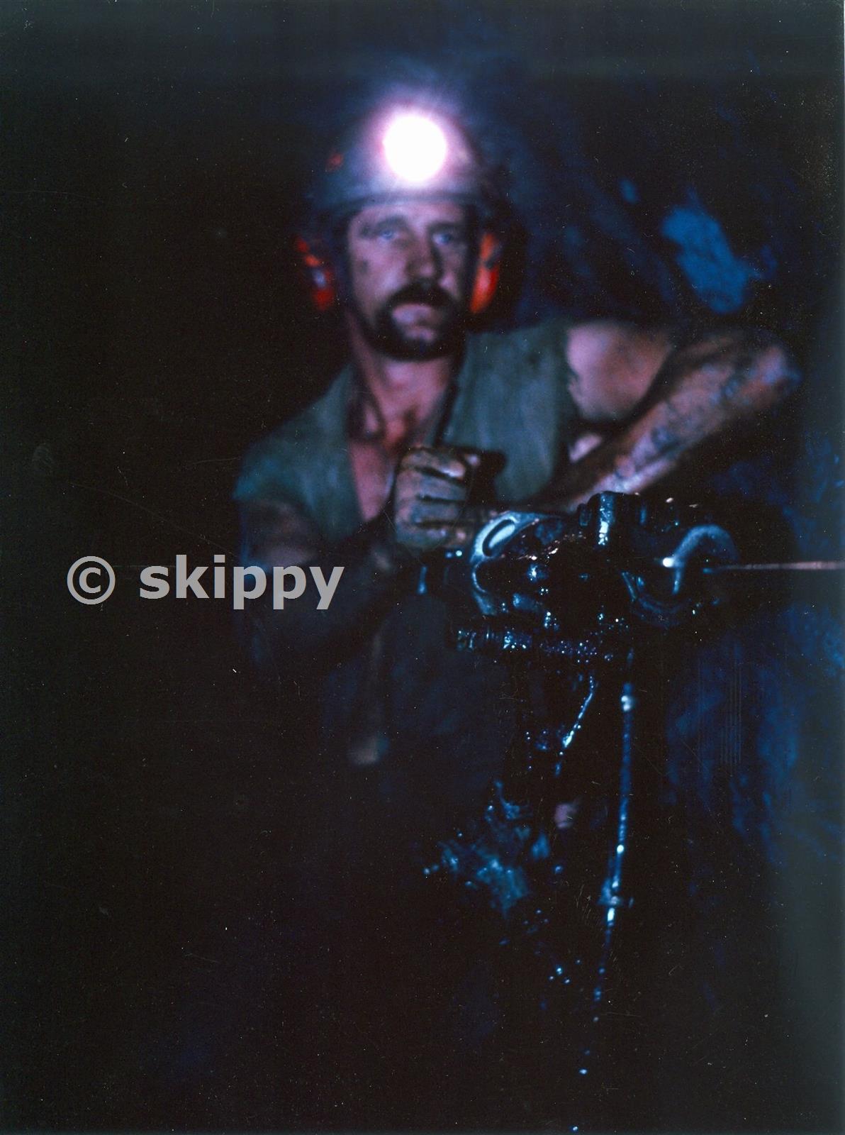Miner, Greg Barnes on night shift - 1200 level, north kal, 1984