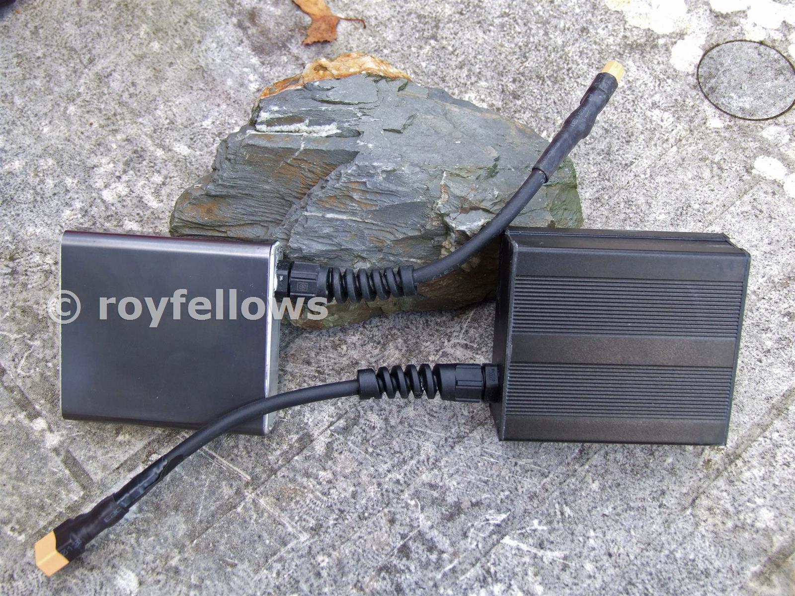 On the left, lightweight 2600 mAh, on the right the 4250 mAh at 11.2V nominal.