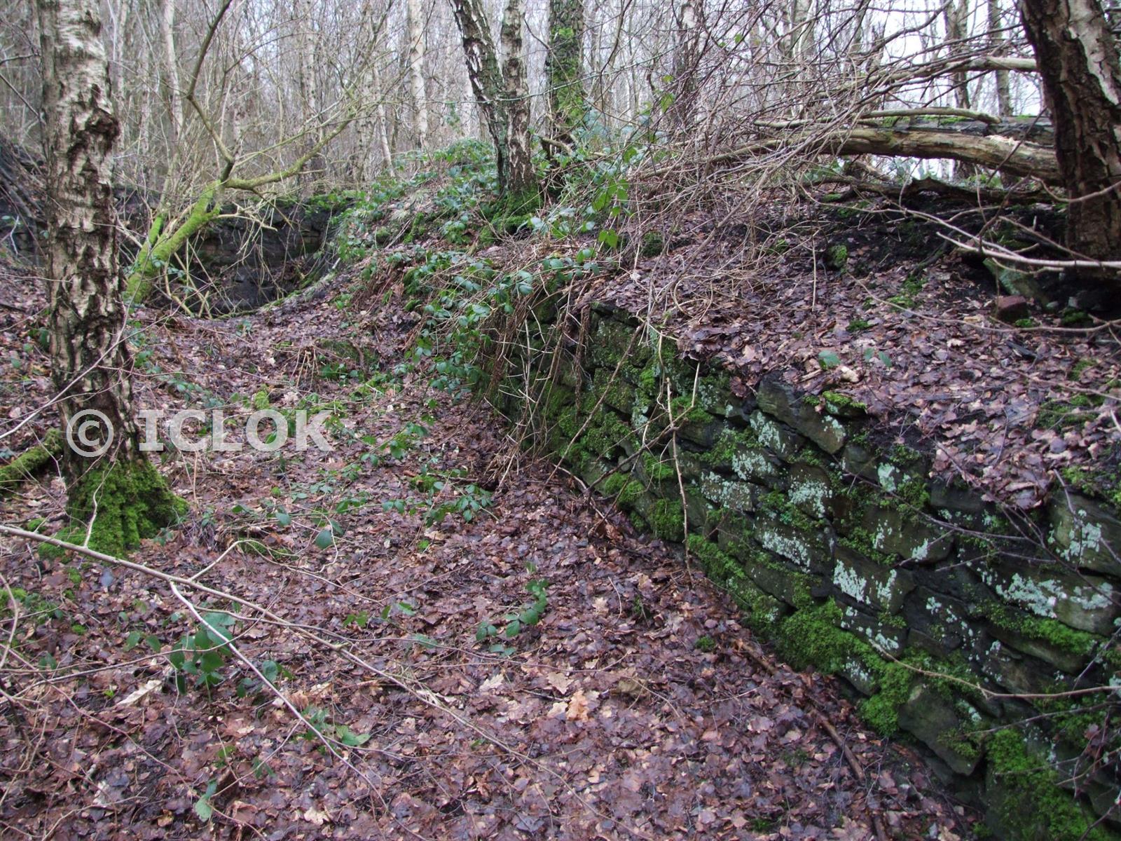 13.02.10 Stone lined Tramway cuts to Main shaft - shaft is dark depression upper centre