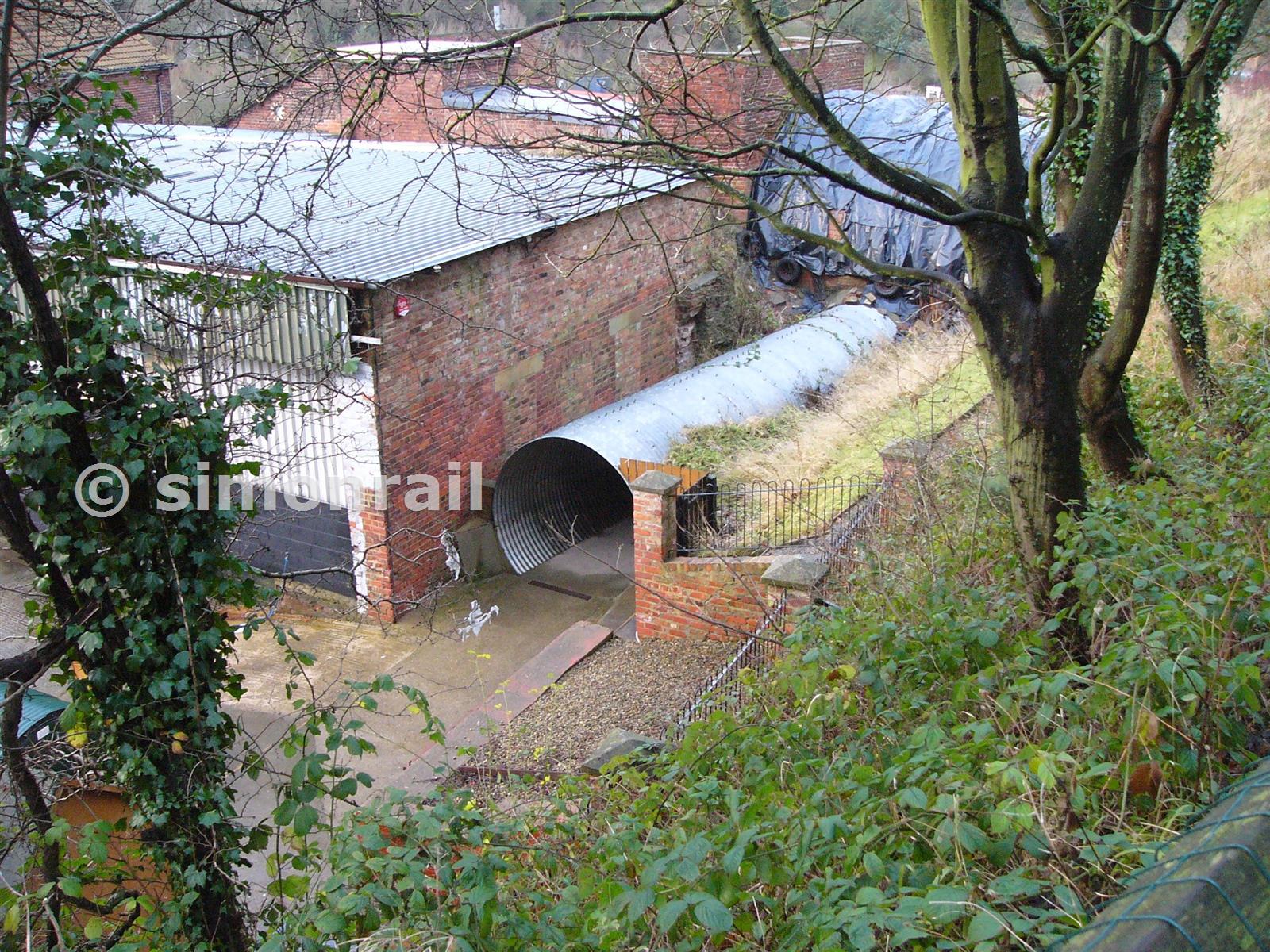 Behind the steel tunnel can be seen the end wall of the air compressor house of 1891 with its two sealed windows and central doorway.