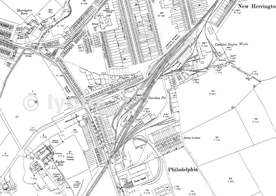 This mine was within a continuous line of shafts from the Success Pit NZ327518, Itself more or less in line with the Lambton B shaft NZ321515, The former wagonway linked all these mines including the Dorothea (Dolly Pit) twin sister the Margaret Pit (Peggy) NZ331519 and onto the Philadelphia Engine Works This would dominate the area, This once famous Works built and repaired Steam engines/rolling stock (there is a nearby Powerstation, 1st in the area to supply electricity, now just the building shell remains although said to be listed), However the area will be shortly be Homes and a supermarket.