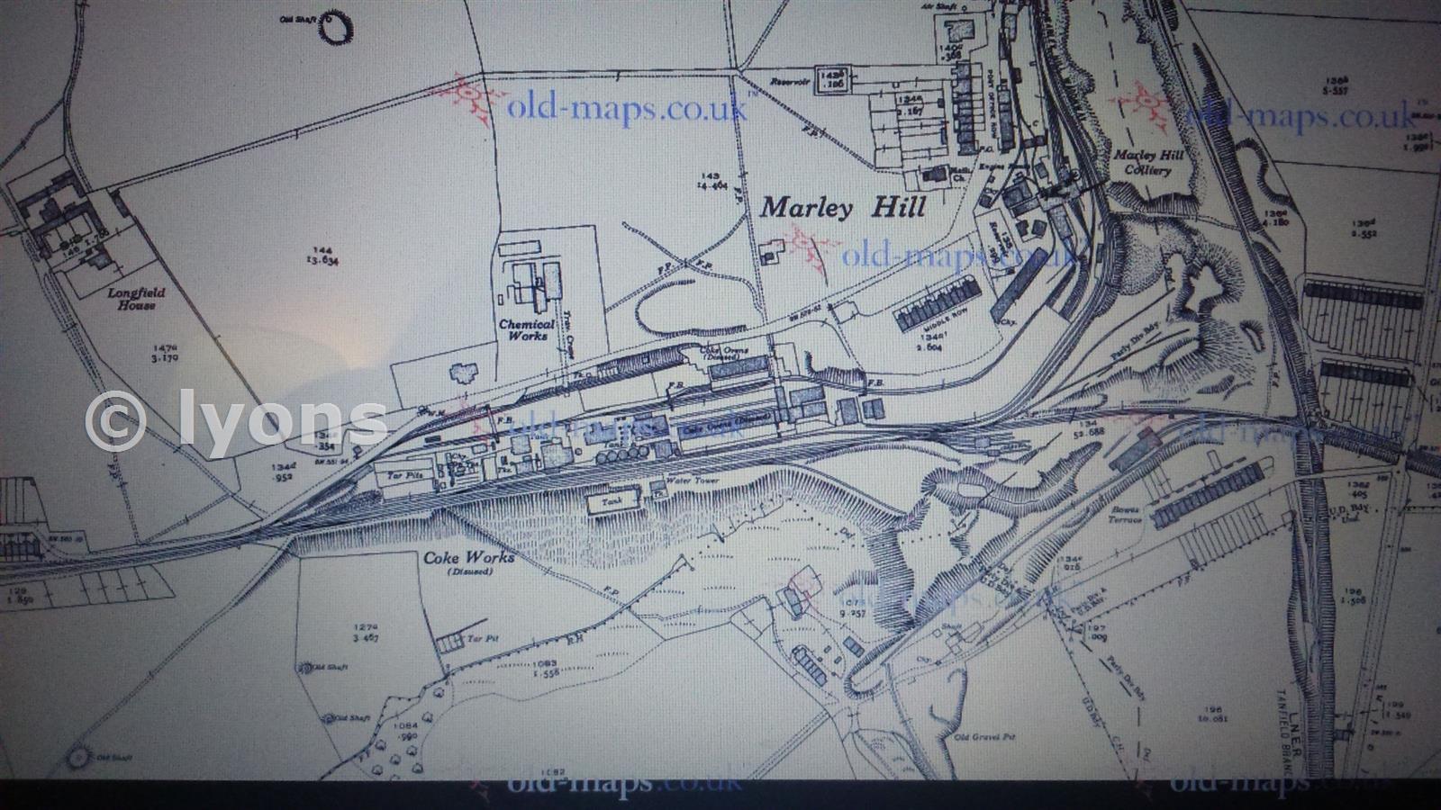 More Demolition work to the housing of Chapel Row and Coke Row leaving only Middle Row (Which is close to the Upcast Shaft and Reservoir) However The Large Coke Works are now Disused, Whilst Andrews House has been almost swept away leaving just a Shaft and odd building. But a Chemical works has sprung up above the abandoned Coke Works.