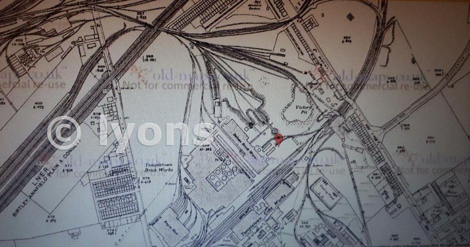 Now named Victory Pit, again appears more clay than coal produced judging by the expansion of the Brickworks, also large Coke Works plant and just below Tar making plant. The distinctive stone building on Delves Lane now shown. Other than the stone (workshop?) buildings very few other buildings are on this map, and only one shaft.
