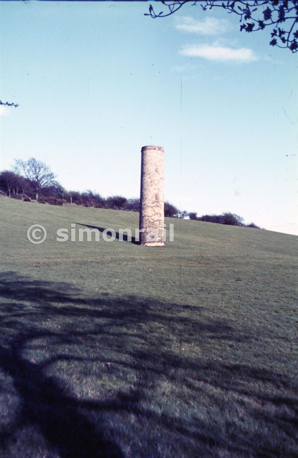 A splendid ventilating furnace chimney perched on a hillside. Destroyed within a few years.
