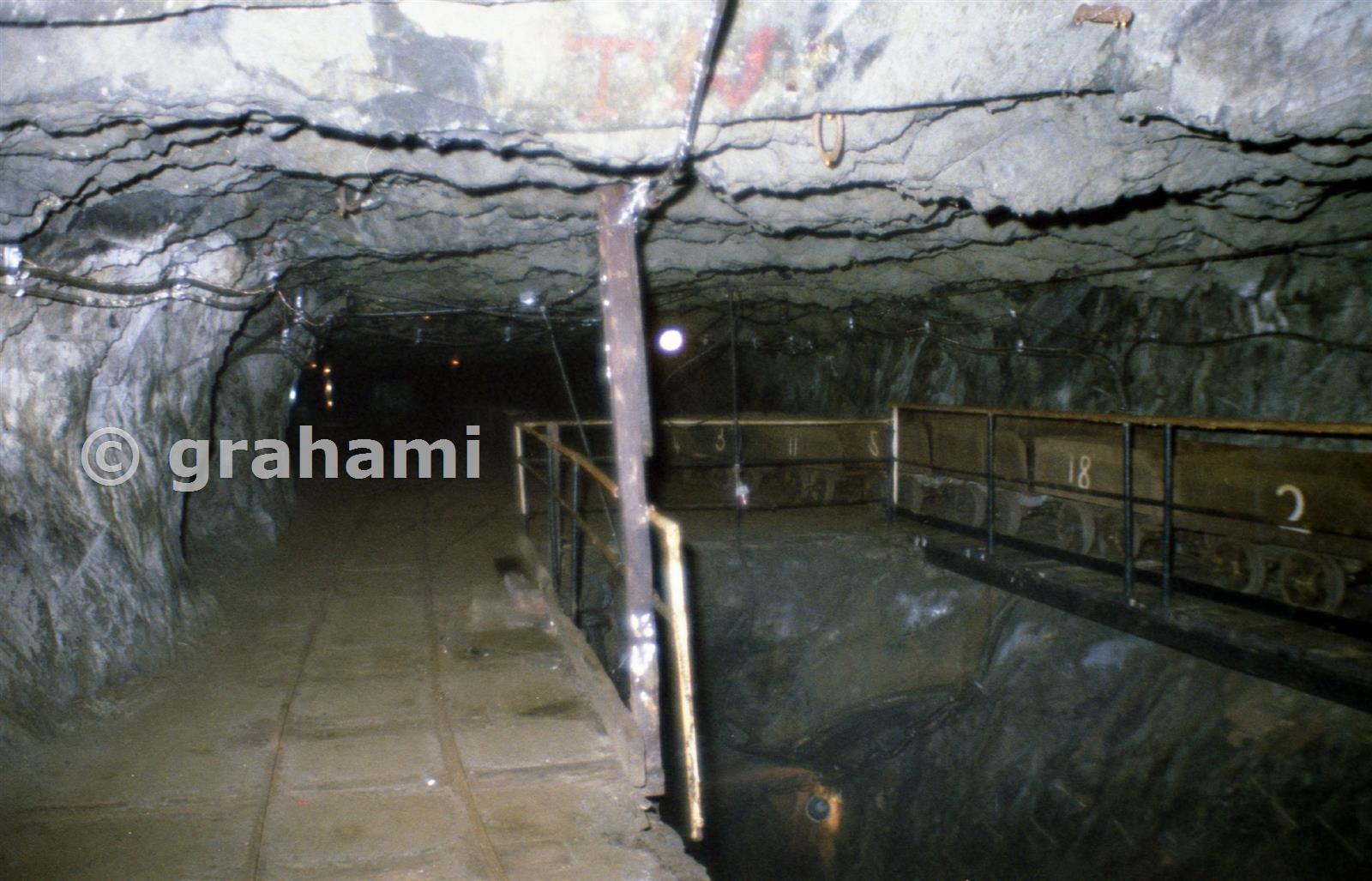 Looking back over the shaft towards the Passby. Notice how the tracks are carried across the sides of a wide shaft by bridges. One might well ask why the shaft was made so wide...