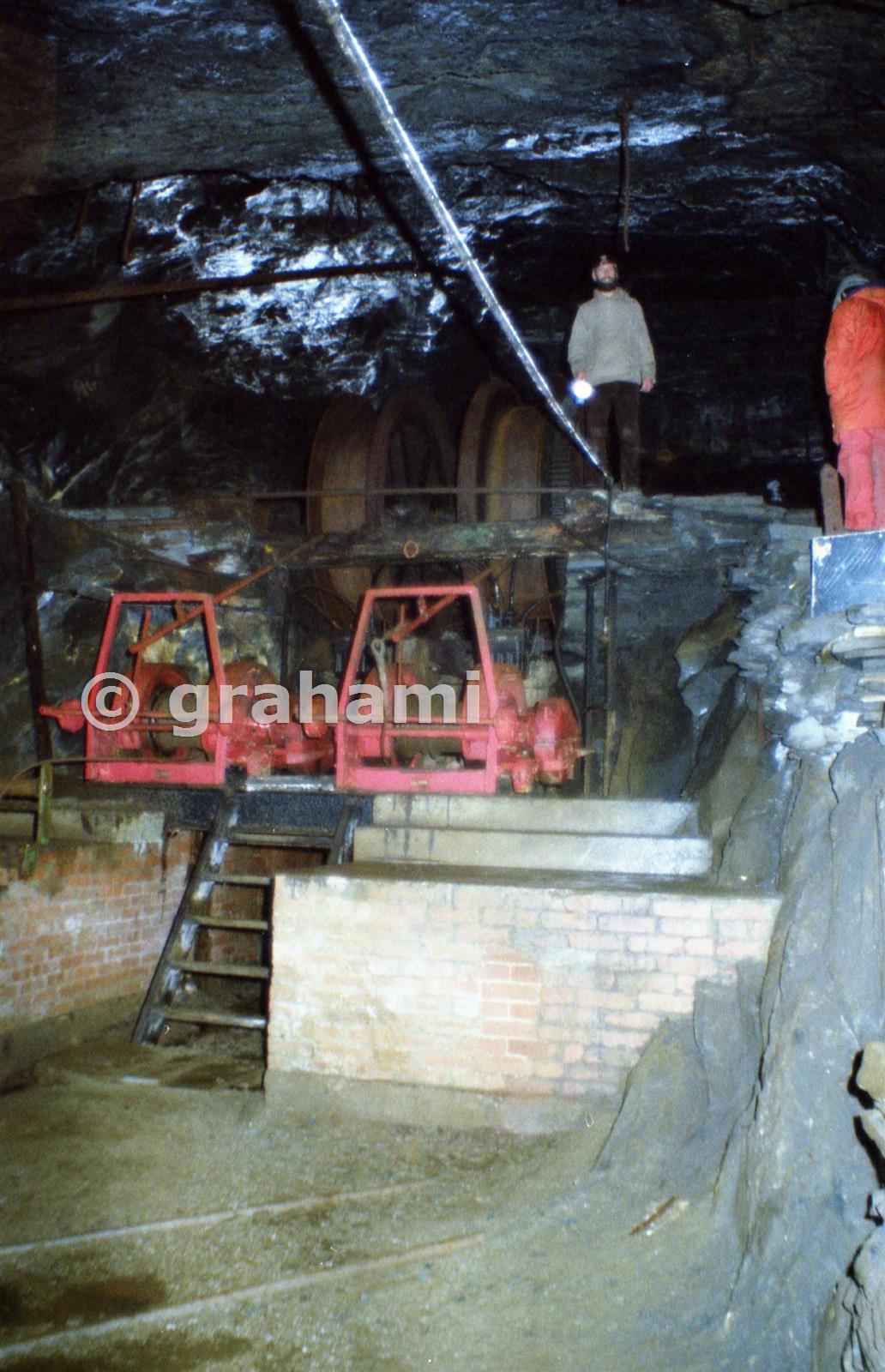 It is believed the old Robey drums were re-used by Kellow, the locomotive style boiler and engine located where Michael Lewis is standing being replaced by a 90HP electric motor and control gear.