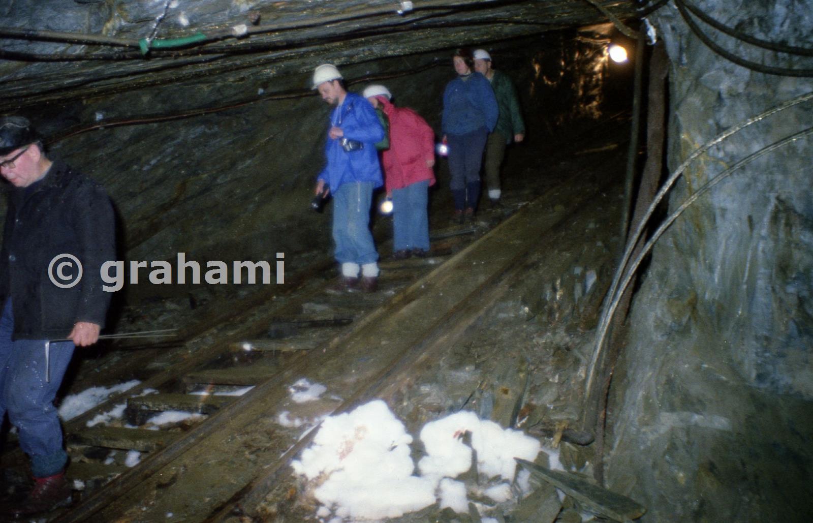 Some of the team arriving at the B floor landing. Carrying the dowsing rods is the inestimable Rodney Weaver.