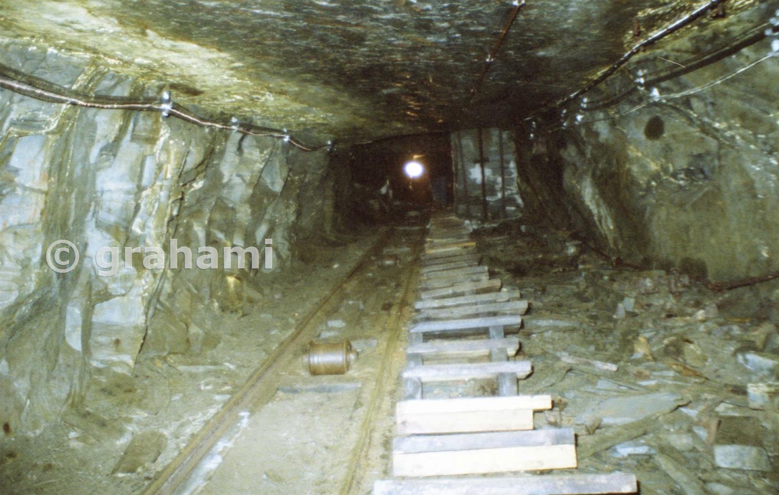 A view looking up the incline from floor C towards B, with the B floor landing visible below the light.