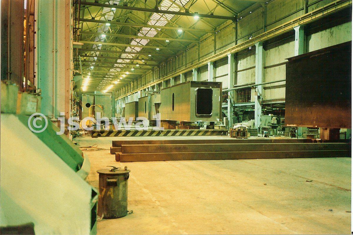 View from bottom of No.8 shop showing more complete crane girder sections for Sizewell. Each section weighed 50t and three were used for each girder.