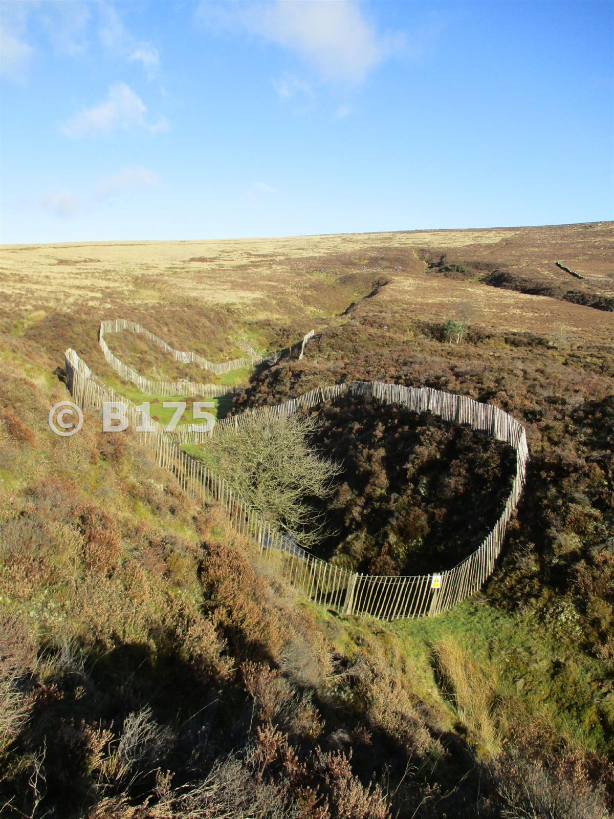 view looking NE towards Birch Tor with deep open works that have underground workings immediately underneath - hence the need for fencing.