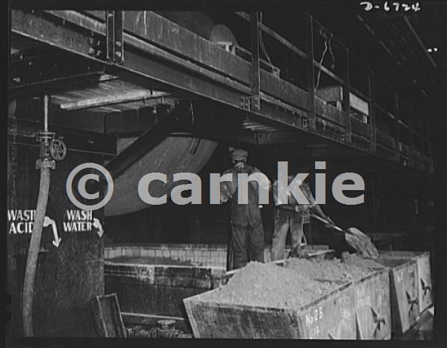 Workers at a Southern tin smelter removing ore from the leaching and bleaching processes and loading it in cars for the furnace. The raw ore comes to the plant in bags, direct from the South American mines and passes through a series of processes that result in the extraction of pure tin which serves countless war purposes of the United Nations Courtesy Library of Congress, Prints & Photographs Division, FSA/OWI Collection, reproduction number, LC-USE6-D-006724