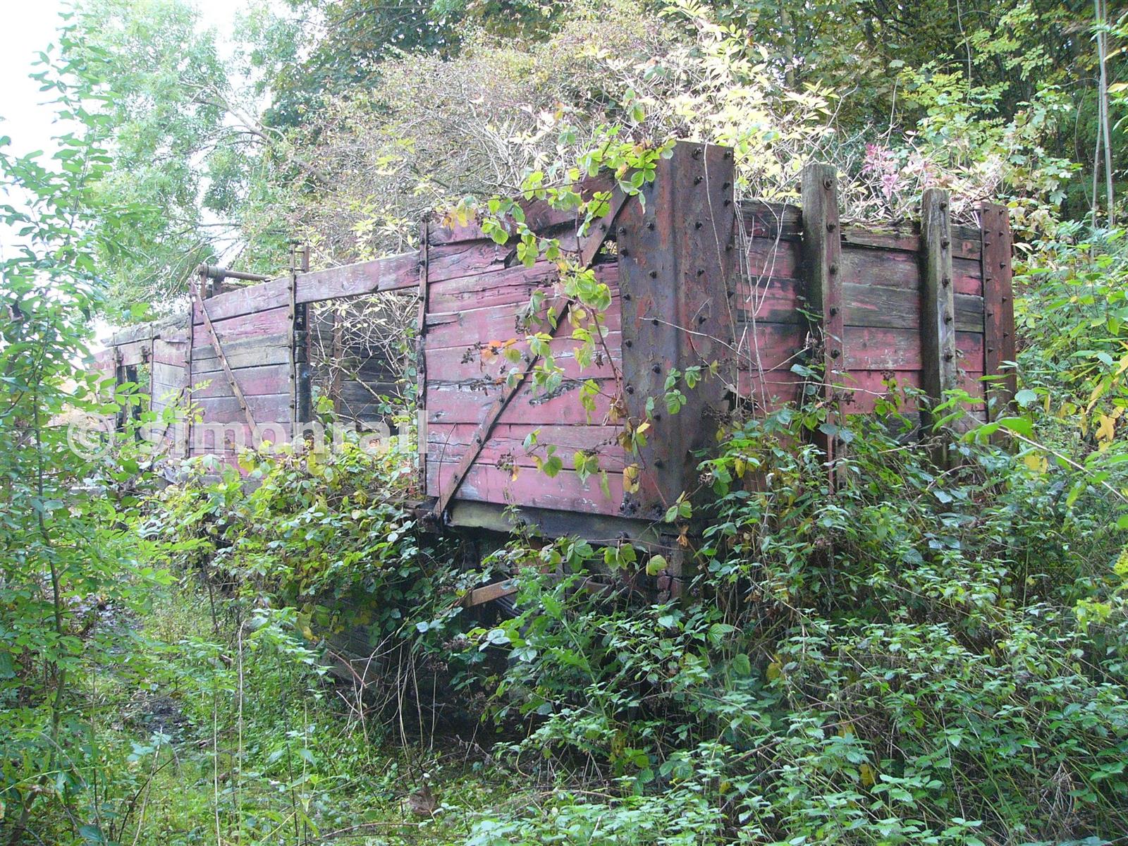Historic wooden end-tipping wagon quite properly preserved in an industrial museum. Then left to decay like this. How terribly sad.