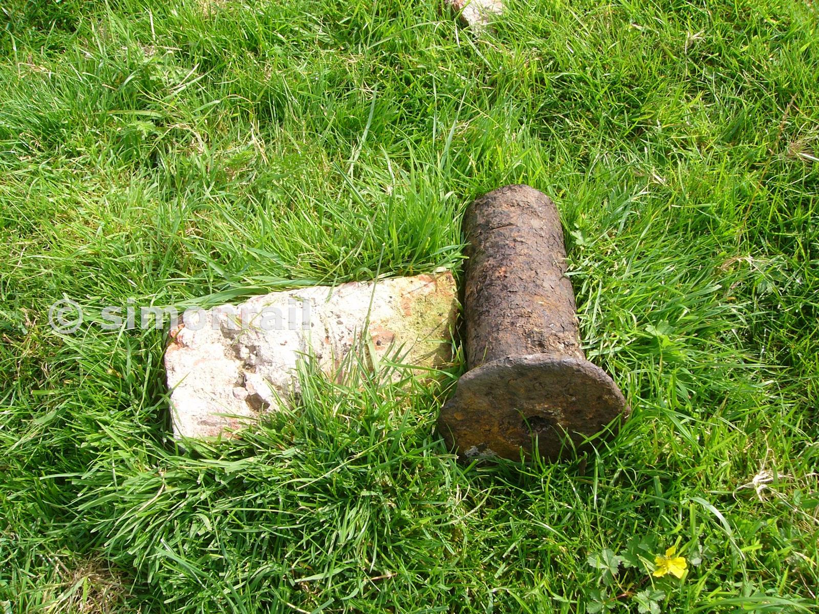 Iron casting on the site. For a ropeway roller seems very heavy.