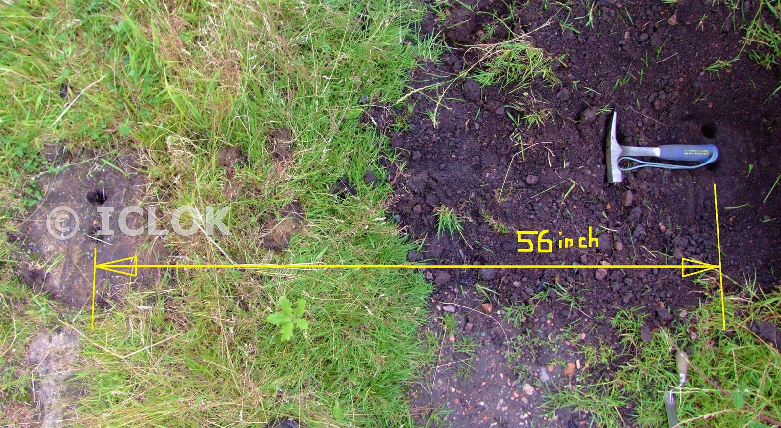 Excavation of buried Stone Block parallel to the exposed ones still to be seen on the incline in order to get the gauge of the route.. It has always been supposed as being 4'6" and the position of the holes at about 56" apart and given the design of rails used would confirm gauge as approx 4'6" - 4'6.5"