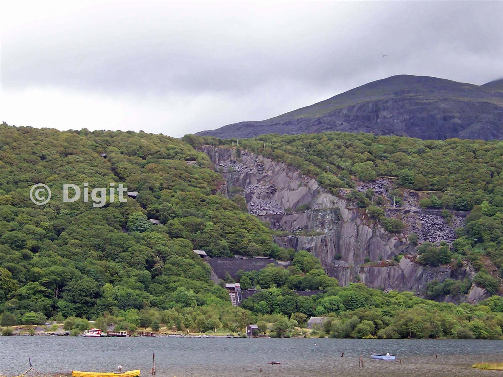 This is the view most people see from the Llanberis village car park by the side of Llyn Padarn. To see more detail of the inclines and working levels see the equivalent winter view.