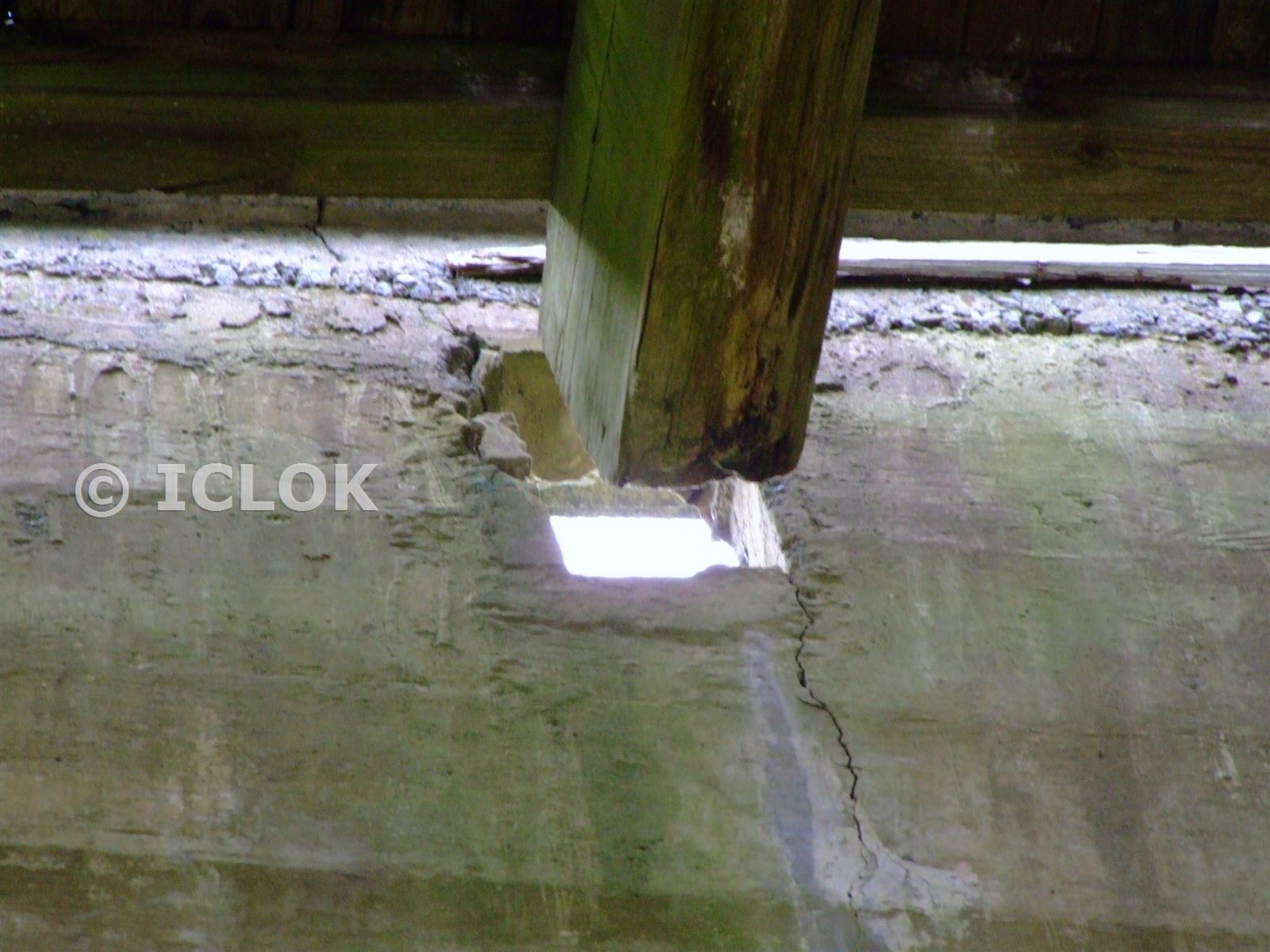 27.08.09 Kilton Mine - Interior, timbers pulling out of gable end wall