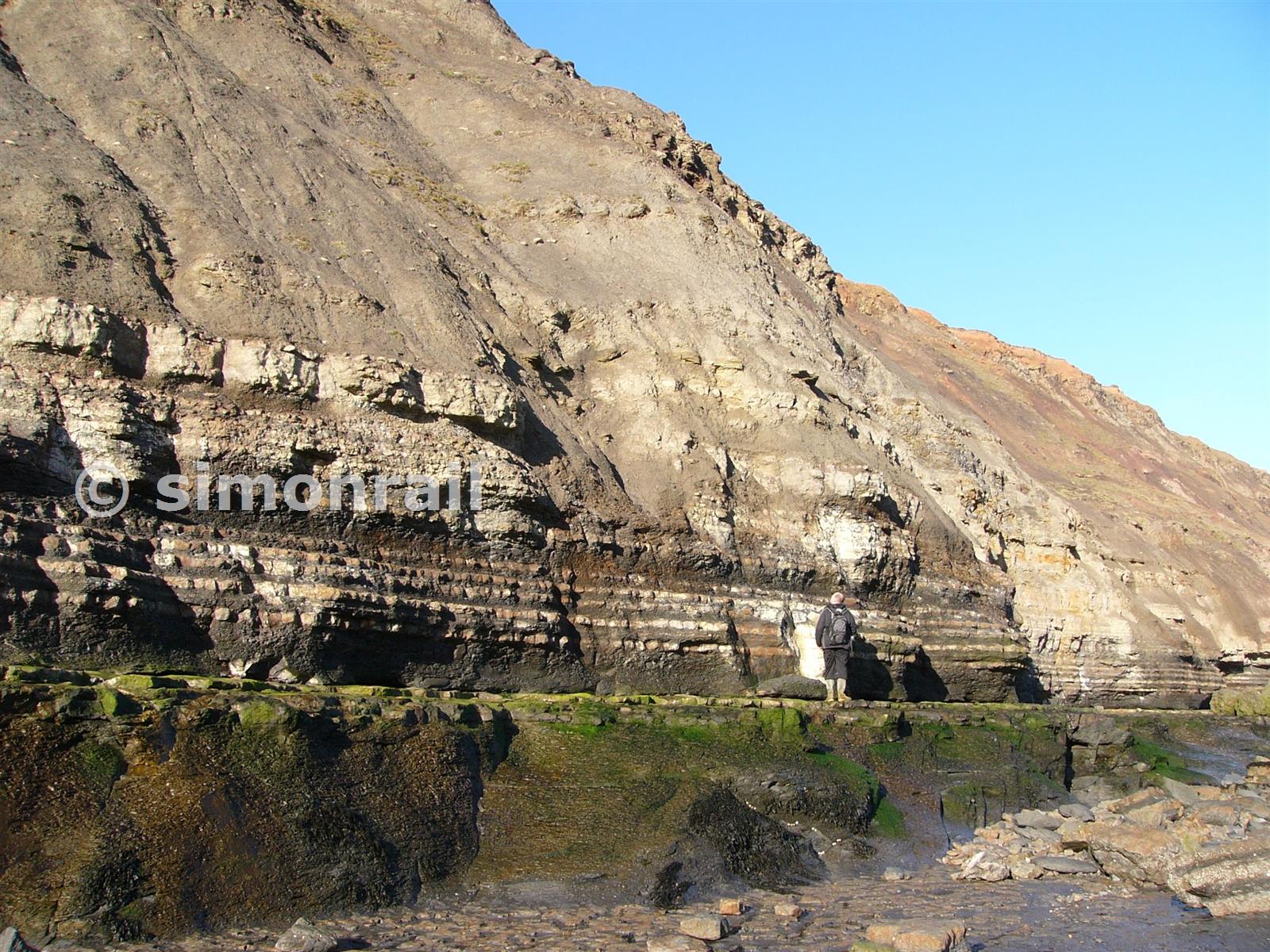East side of Old Nab. Dave is standing on the Two Foot Seam with the Pecten Seam in front. Above is the Main Seam with a collapsed drift apparent.