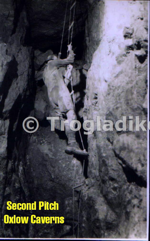 2nd pitch in Oxlow cavern leading to West chamber with connection to Maskhill Mine.taken 1952