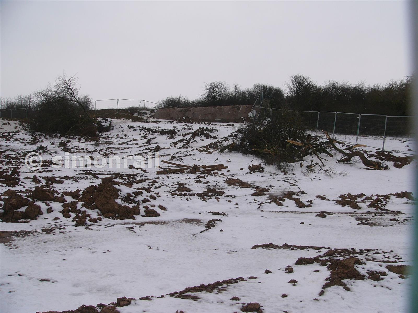 Concrete magazine of 1877 exposed by construction work. In the centre of picture are some lengths of steel rail also uncovered.