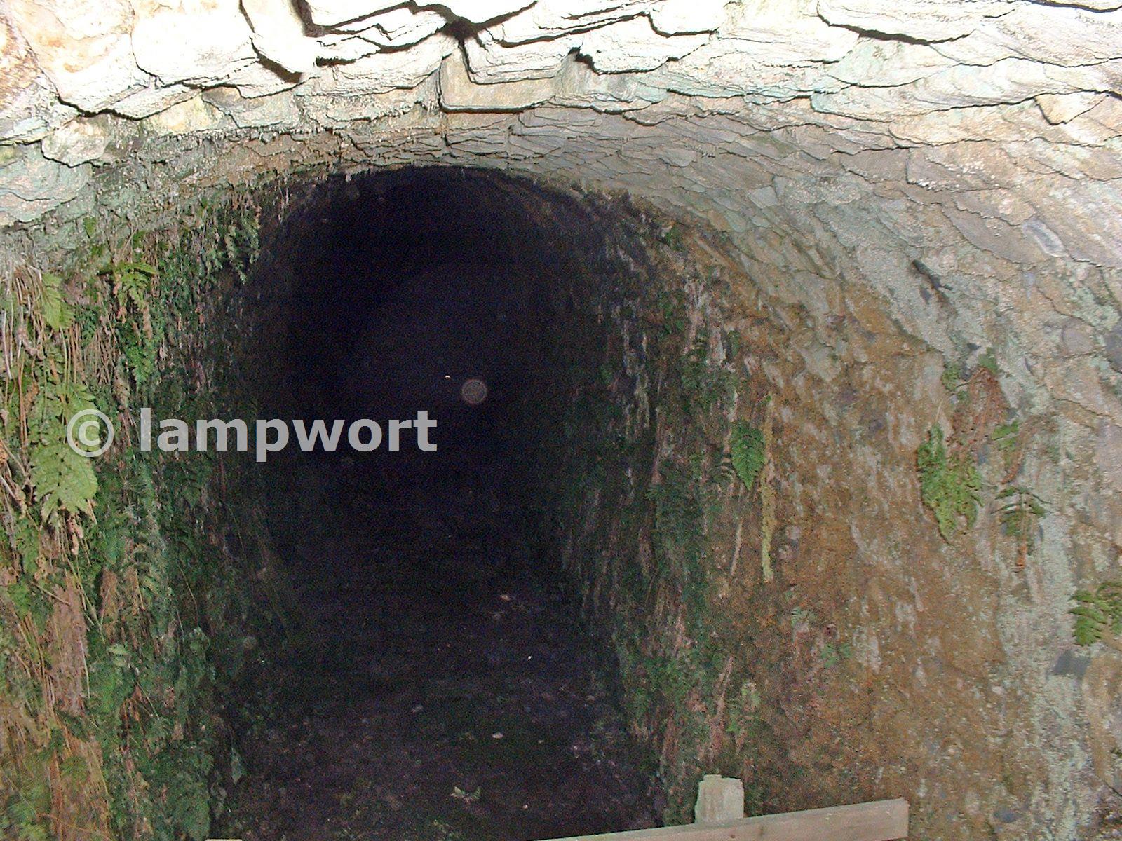 Allendale appeared to have 2 lead smelters each with a long chimney leading to a vertical chimney on high ground as it was found that more lead could be scraped from the roof of the chimney that was produced in the smelter. Young boys of around 10 years old were employed to do the scraping. Life expectancy was 3 to 4 years before they died of lead poisoning. The 2 flues crossed over each other on the way up the hillside. Here we are looking into the older flue